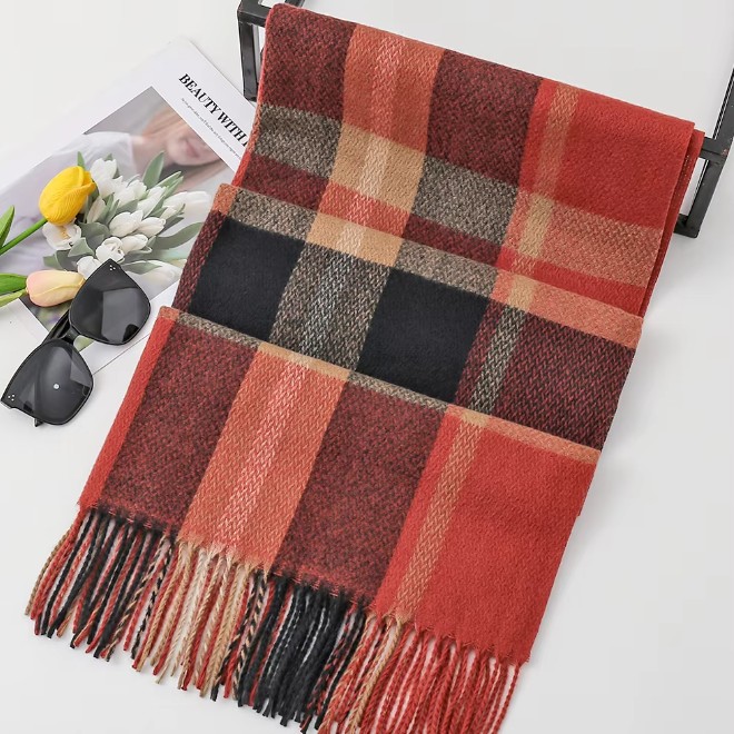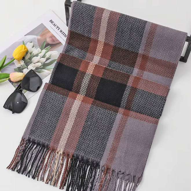 Wholesale of 11 Pks Winter Vintage Plaid Scarf For Men and 22 Pks Mens Plaid Polyester Scarf.