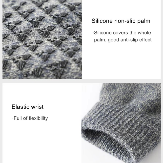 Detail for 4 Prs Men Thicken Touch Screen Anti Slip Silicone Gel Thermal Soft Knitted Gloves: