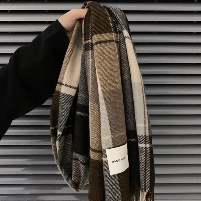 Detail for 11 Pks Winter Vintage Plaid Scarf For Men: