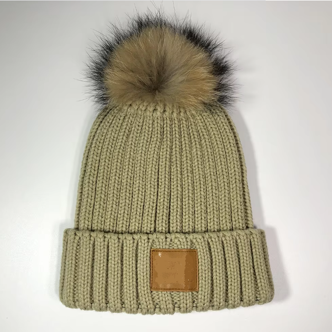 6 Pks Plain Camel Chunky Heavy Patch Bobble Hat